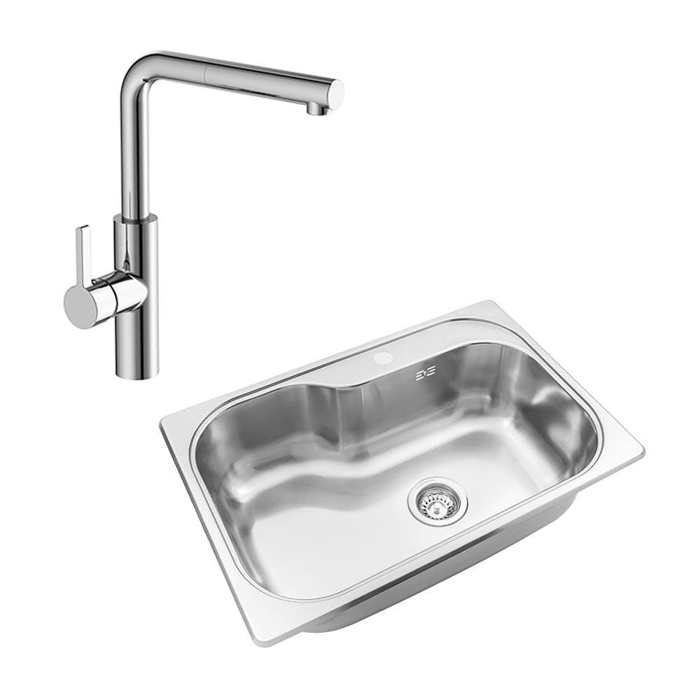 Bacha cocina Johnson Luxor SI85 STAD + Grifería Piazza 10317NE
