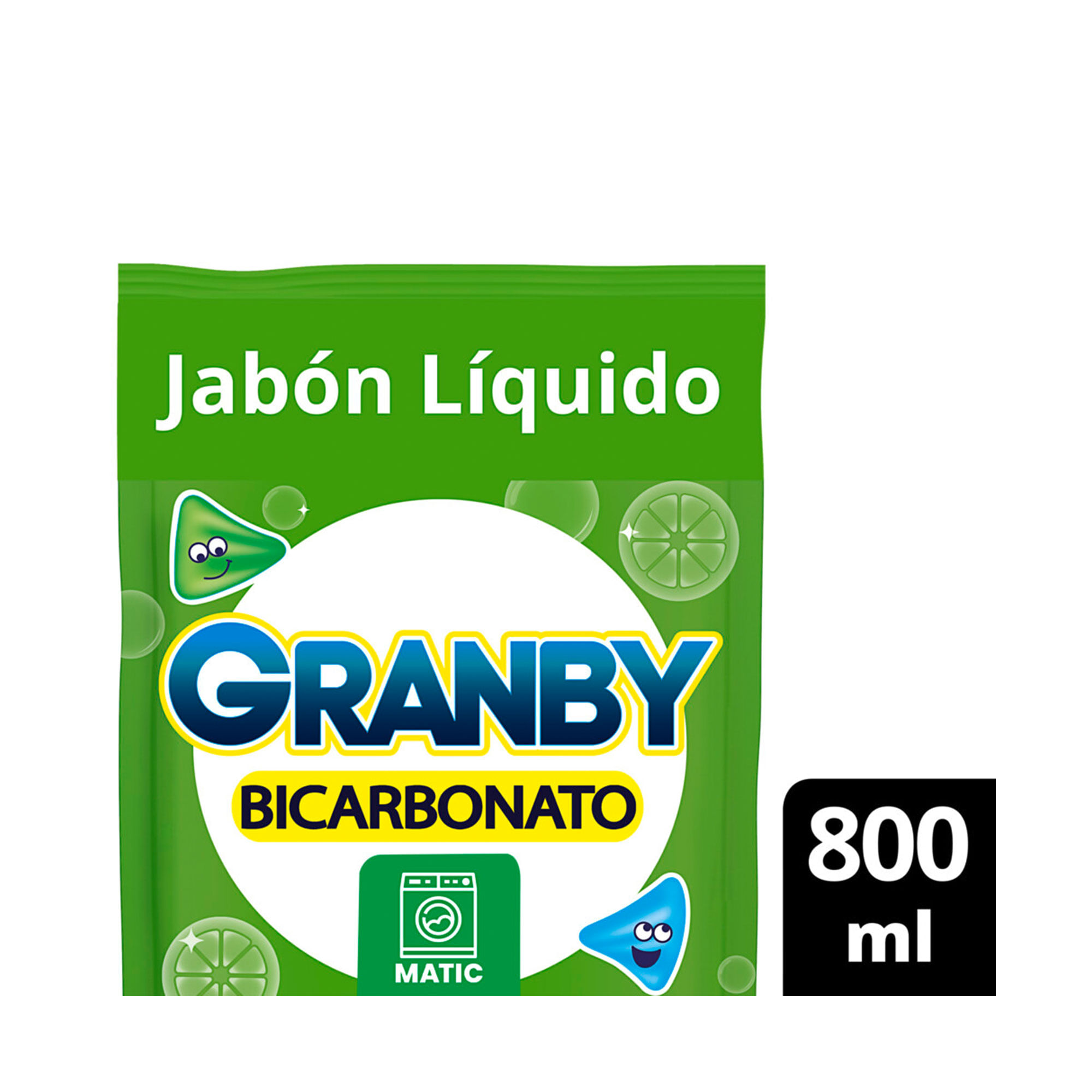 Jabón Liquido para lavar ropa Granby Bicarbonato Baja Espuma de Limón 800 ml